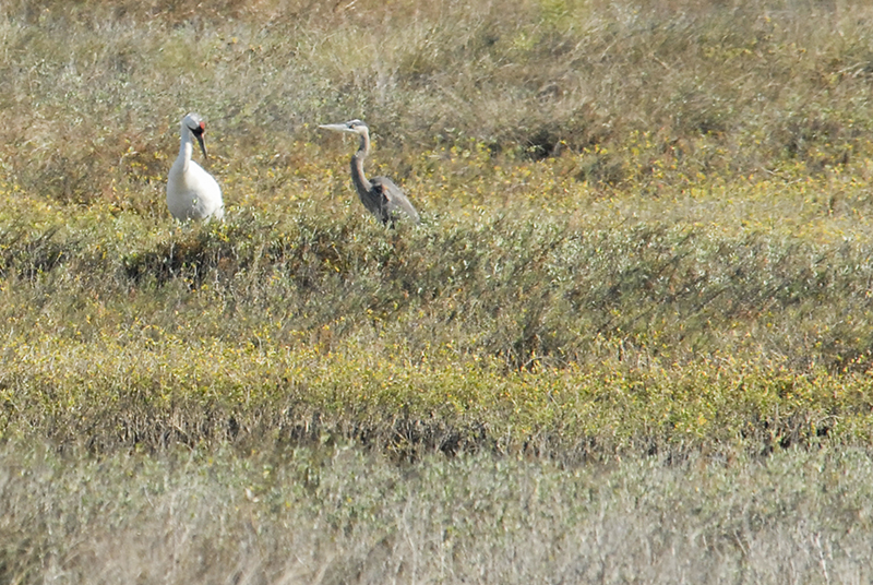 Whooping Crane and Great Blue Heron